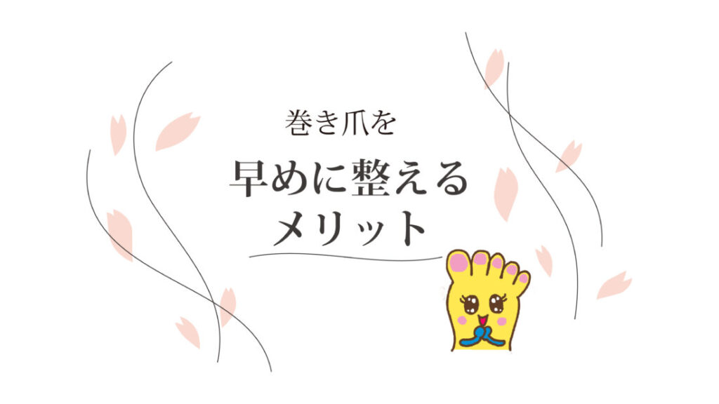 巻き爪は放置するほど悪化しやすい特徴がありますので早期にケアを行うことで、爪や指先への負担を軽減し、快適な状態を維持しやすくなります。日々の小さなケアの積み重ねが、健康でトラブルの起こりにくい足元づくりにつながります。